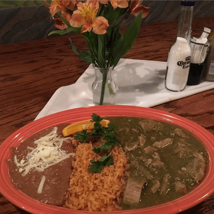 Tender chunks of lean pork in our signature green sauce. Served with tortillas. Served with homemade rice and refried, pinto, or black beans. Add a side salad for an additional charge.